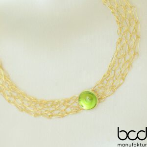 Ultramarinblauer Lapislazuli – Damen-Collier aus vergoldetem Draht mit tiefblauem Lapislazuli-Cabochon – September Geburtsstein