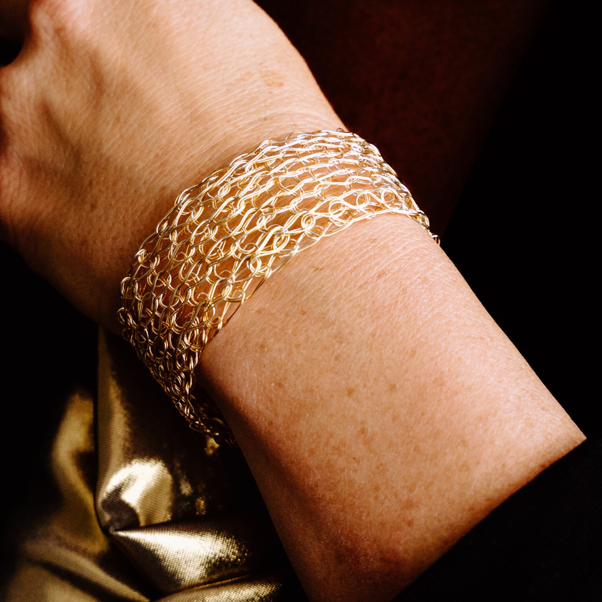 Armband gehäkelt aus Silberdraht mit parallel verlaufendem Verschluss – AR589_1