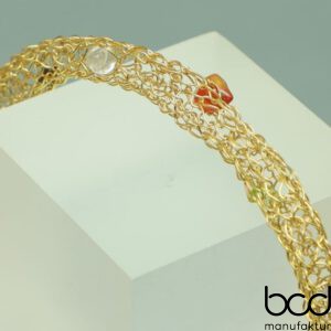 Chakra Armband – Energie, Balance & Harmonie – gehäkelt aus 24ct vergoldetem Draht – mit 7 Edelsteinen