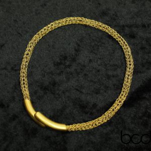 Gold-Choker mit extravagant verlaufendem Verschluss als Mittelpunkt