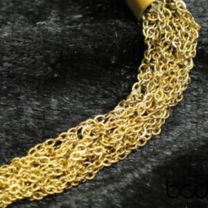 Außergewöhnliches flexibles Damenarmband im Art-Déco-Stil – handgearbeitet aus feinem goldfarbenem Edelstahl-Kettchengarn
