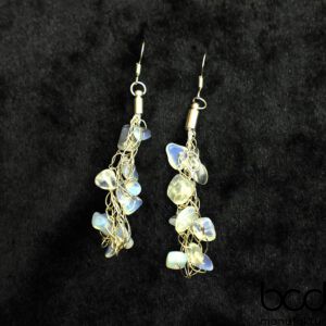 Extravagante fröhliche Boho-Ohrhänger – handgehäkelt aus Draht mit Edelstein-Chips