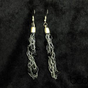 Extravagante fröhliche Boho-Ohrhänger – handgehäkelt aus Draht mit Edelstein-Chips