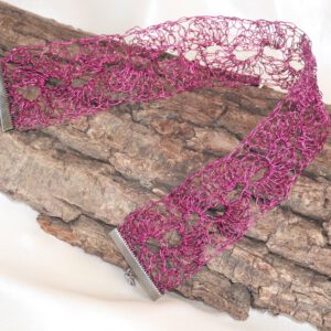 handgehäkelte Chokerkette aus feinem, fuchsiafarbenem Schmuckdraht in kunstvollem Muschelmuster