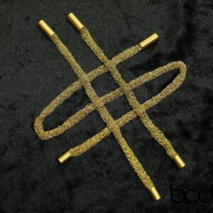 Design: Das Collier besteht aus einem Band aus 24karätigem vergoldetem Draht, kunstvoll gestrickt. Die Optik verleiht dem Stück eine einzigartige, handgefertigte Struktur.