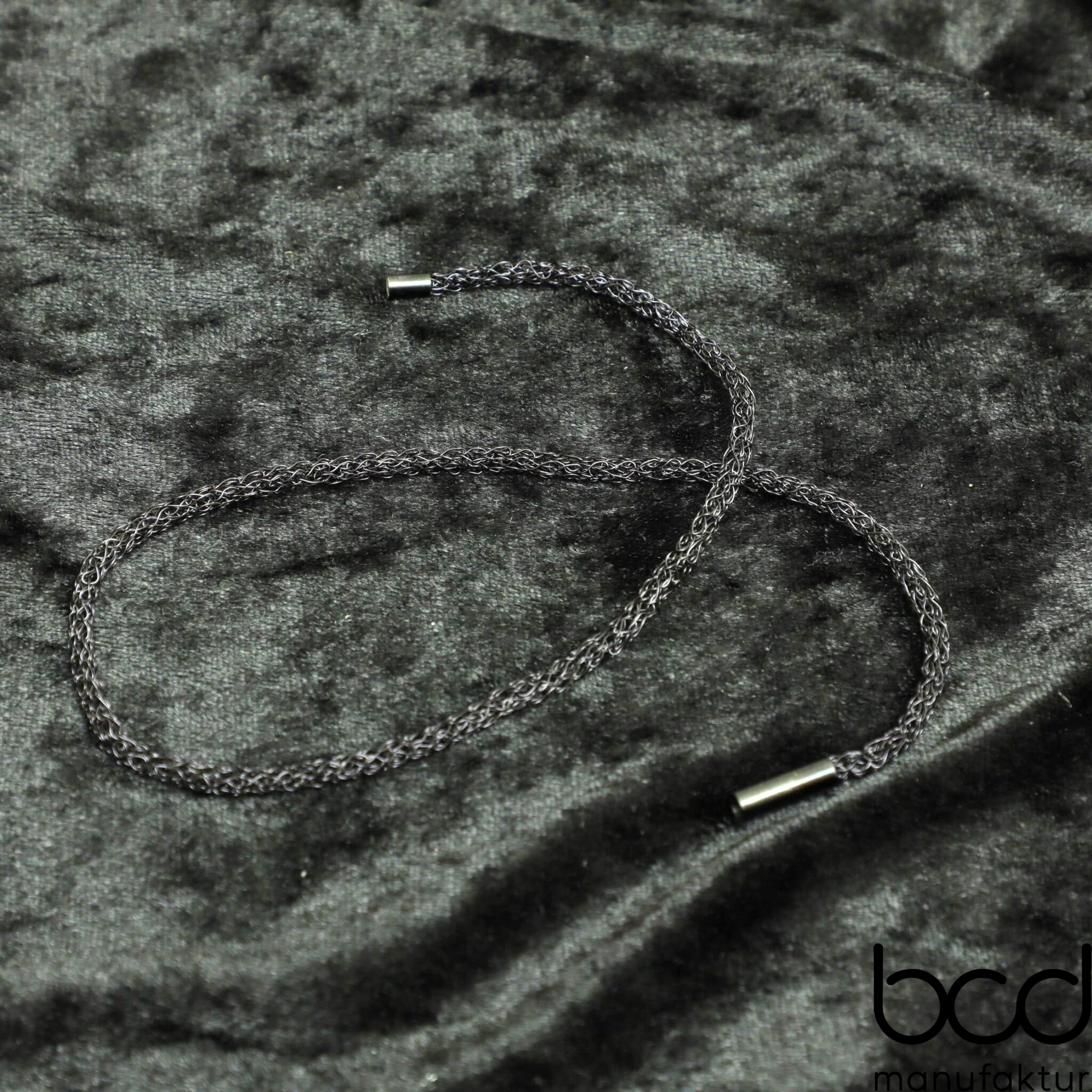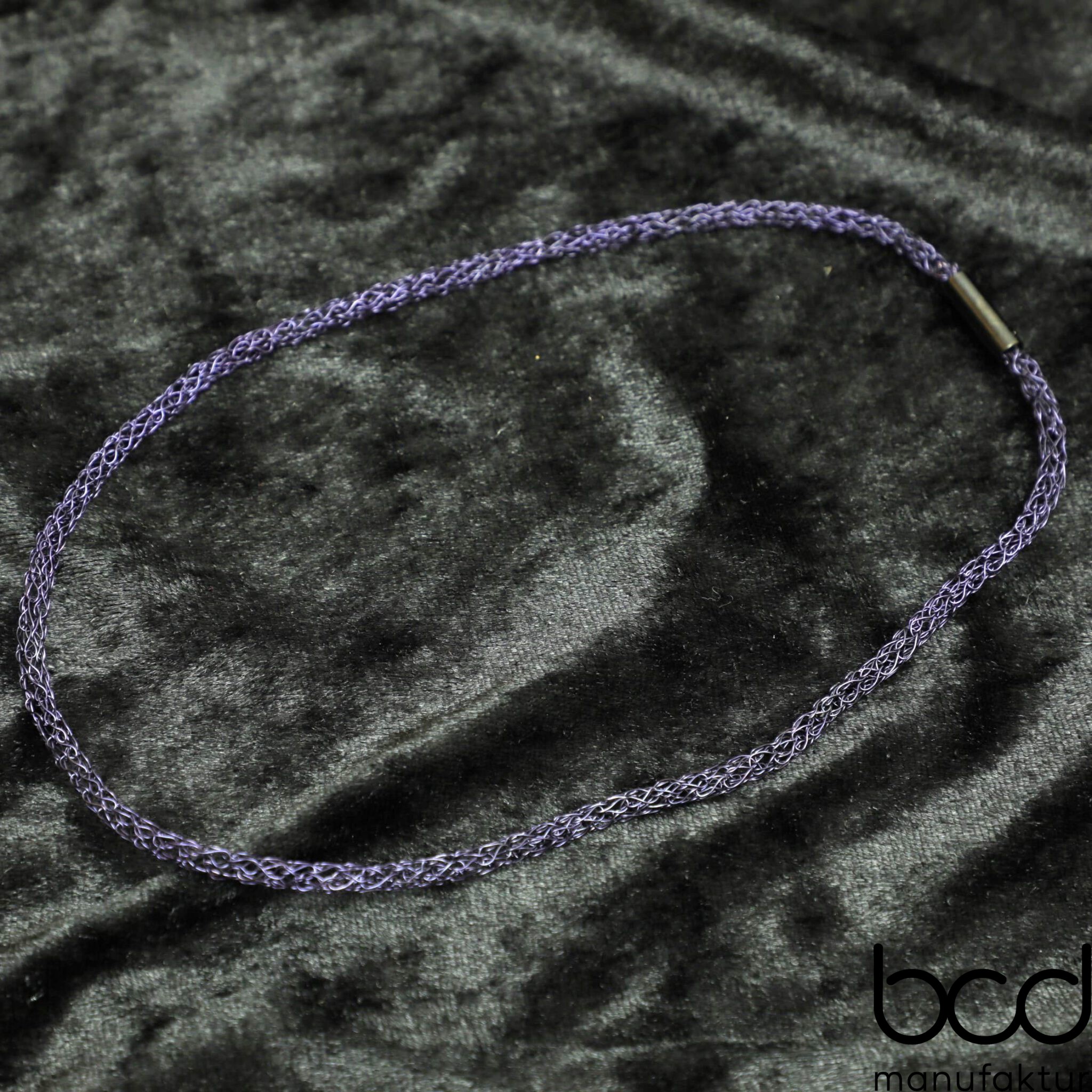 Diese zarten Damen-Halsketten bestechen durch ihre filigrane Optik und hochwertige Handarbeit. Jede Kette wird sorgfältig aus feinem vergoldetem, versilbertem oder farbig lackiertem Draht gehäkelt und überzeugt durch ihre leichte, angenehme Tragbarkeit.